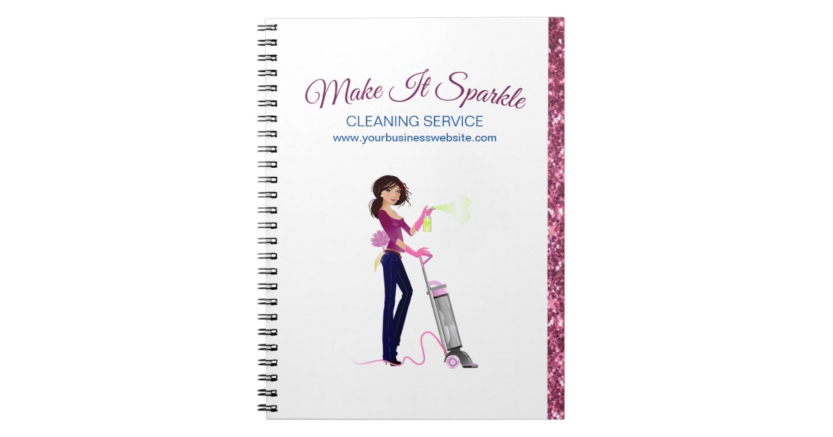 Cute Sparkle Cartoon Maid Cleaning Services Notebo Notebook Zazzle